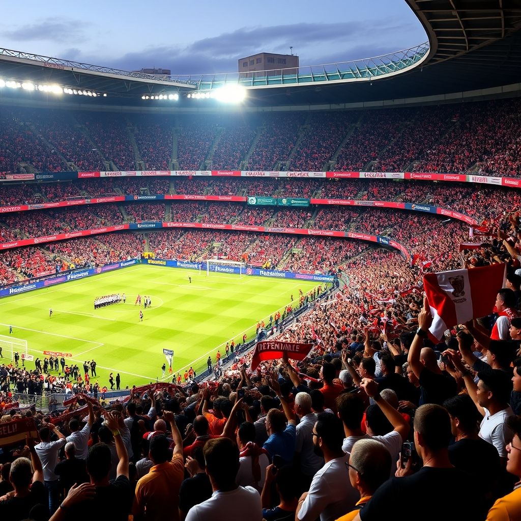 独立俱乐部的主场是一片红色的海洋。无论是站席还是坐席,都能看到穿着队服的球迷们激动地为球队加油助威。整个体育场就像是一座巨大的音响设备,每一声呐喊和鼓声都在空气中回荡,让人感受到一种无形的力量,仿佛每一分每一秒都在诉说着“胜利属于我们”的决心。无论是主队进球时的欢呼,还是客队犯规时的抗议,场内的每一声呐喊都充满了震撼力,几乎能够让整个城市都感受到这股力量的波动。